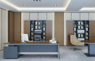 由全鋁打造的全鋁家具董事長辦公桌,黑色皮紋紋理和實木紋理熱轉印的混搭突出產(chǎn)品的莊重時尚。適合各種不同方位的辦公室。